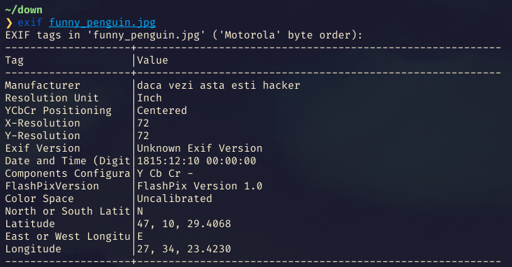 Mai mult de atât, totuși, atât timp cât se respectă formatul necesar, aceste date Exif pot include, de fapt, orice. Vă puteți imagina cum s-ar putea ascunde un flag într-o imagine în acest mod.